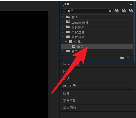 3、接著在效果中找到扭曲下的裁剪效果雙擊應用。