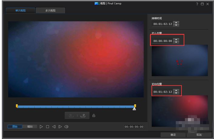 在切入位置和切出位置輸入片段的起始時(shí)間和結(jié)束時(shí)間,即可完成裁剪,
