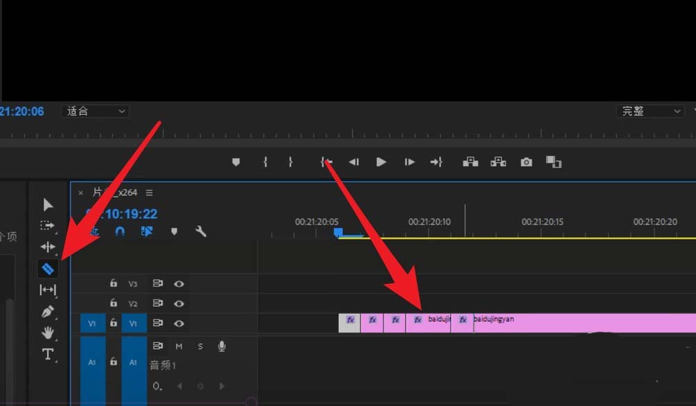 4、然后在字幕軌道中使用剃刀工具逐幀進行裁剪。