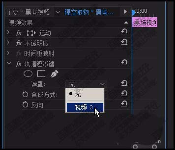 6、再移到效果控件面板,設置遮罩為視頻3