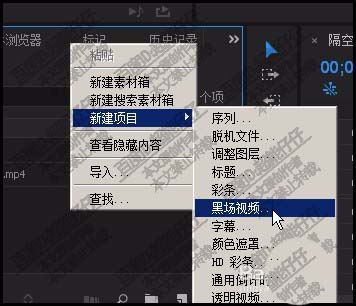 2、鼠標放在項目面板空位置這里,右擊,彈出菜單點新建:黑場視頻