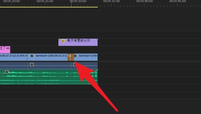 4、將插件拖動到需要制作轉場的兩段視頻相交部分。