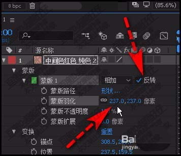 8、再點開純色的屬性,勾選蒙版:反轉;設置蒙版的羽化值,