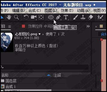 6、保持純色層在選中的狀態下,調出橢圓工具。
