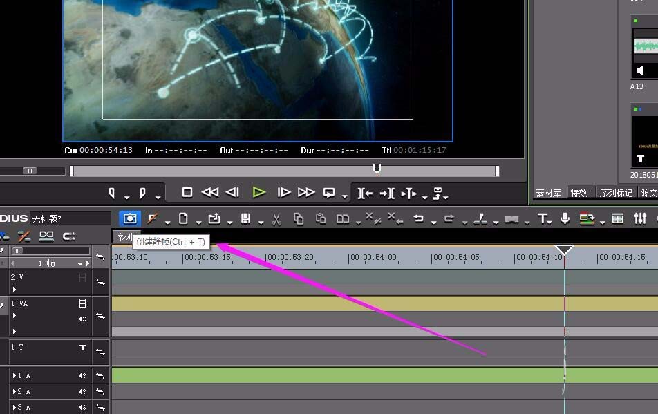 6、還可以把這個-創建靜幀-移動到時間線上,進行快捷操作使用
