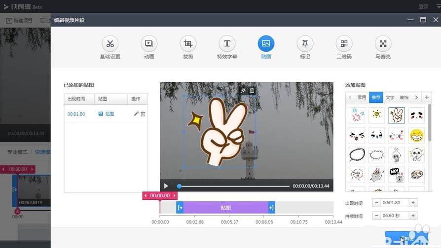 以上就是快剪輯給視頻添加貼圖的教程,希望大家喜歡,請(qǐng)繼續(xù)關(guān)注武林網(wǎng)。