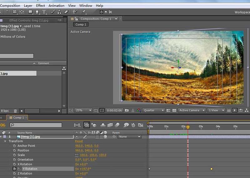 ae中的素材可以添加y軸旋轉效果,該怎么添加呢?下面我們就來看看詳細的教程。