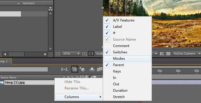 2、在時間線上,點擊右鍵找到并點擊-Modes