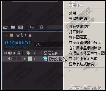 3、接下來,給這音頻文件打關(guān)鍵幀。鼠標(biāo)右擊圖層。
