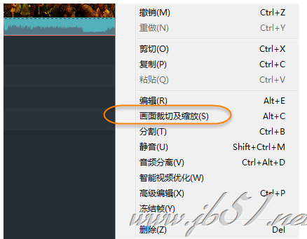 把錄好的視頻片段導入到時間軌道,點擊右鍵,選擇“畫面裁切及縮放”可以對視頻進行裁切。