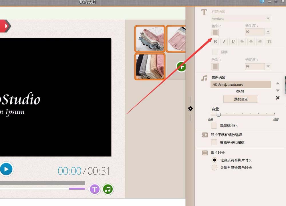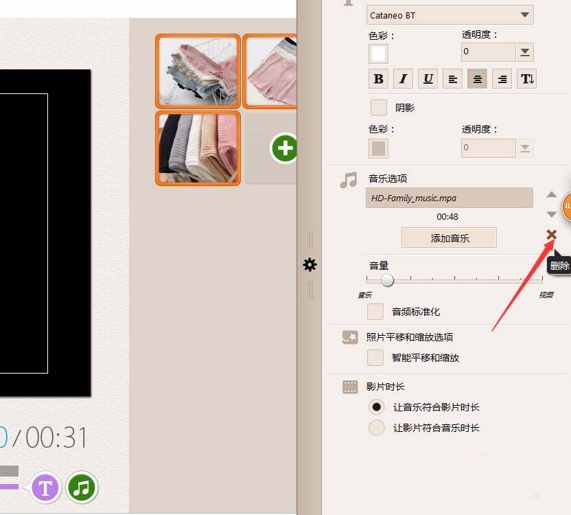 8、然后就可以設置文字的大小顏色等了,音樂也可以設置,不喜歡可以按”X"刪除掉再添加新的。