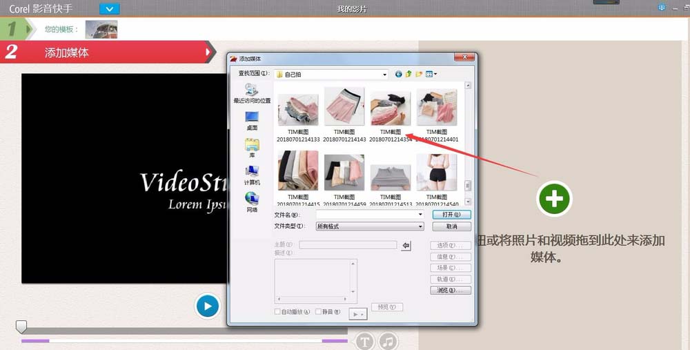 3、選好模版上,就添加上我們的素材,比如相片或者視頻。