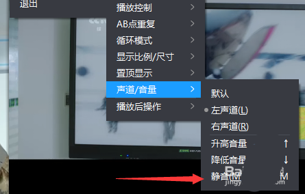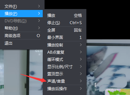 3、進行點擊了播放之后,彈出下一級菜單選中為,選中為聲道/音量的選項。