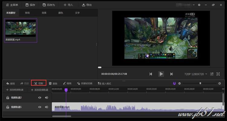 6、視頻成功添加到神剪輯視頻編輯軌道中。我們就可以正式開始進(jìn)行視頻剪輯了。點(diǎn)擊神剪輯界面中的切割,就可以將視頻進(jìn)行切割;