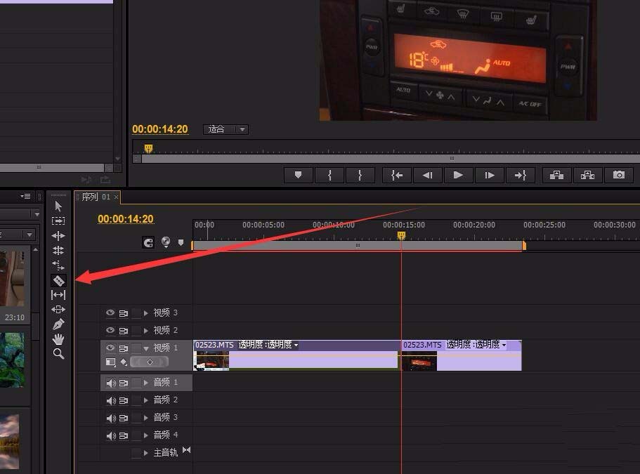 3、點(diǎn)擊啟用這個“剃刀”工具,讓其處于選中狀態(tài),然后對素材進(jìn)行切斷