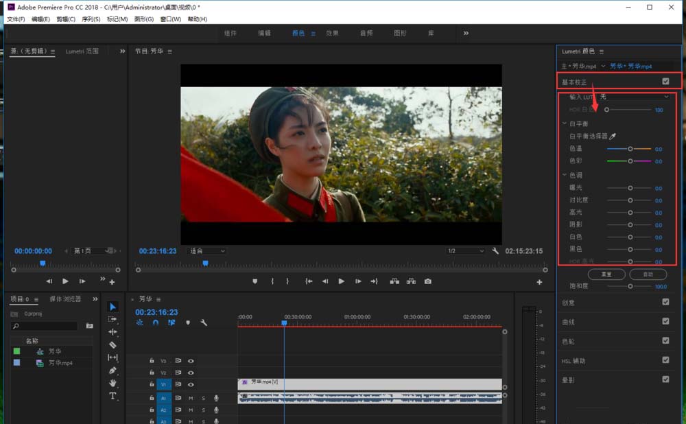 5、點擊顏色后,可以看到PR的界面有了變化,右側多了一個【顏色】的模塊。