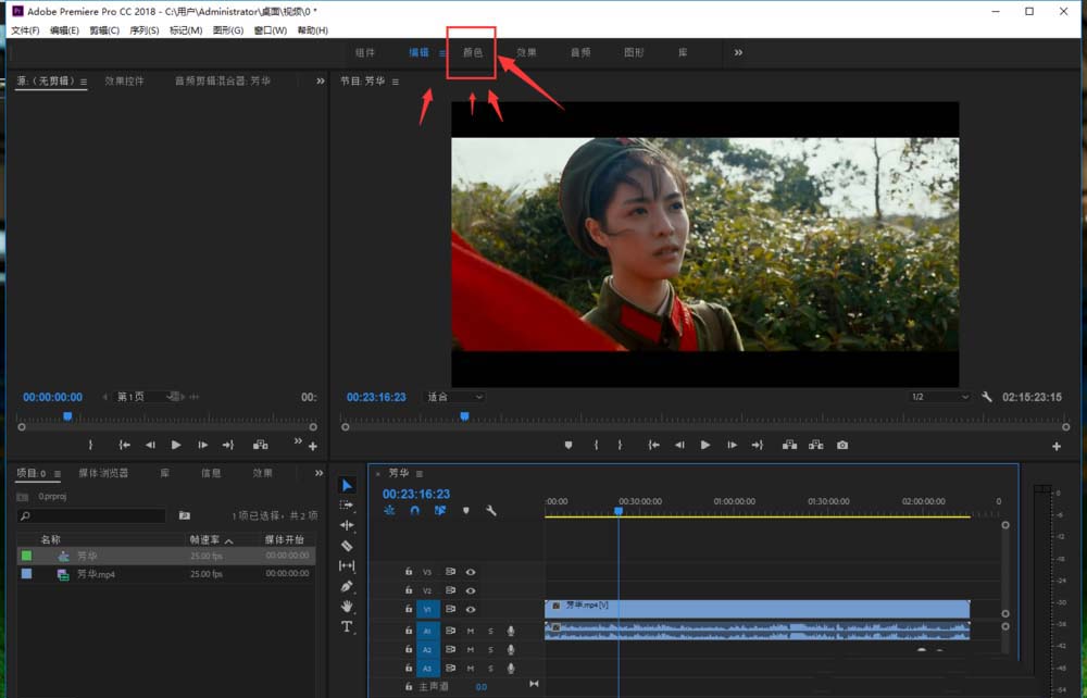 4、我們再頂部點擊【顏色】,把PR界面調整為【顏色】界面。