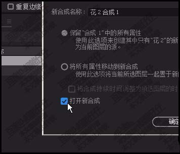 6、接著,鼠標右擊花2層,選擇并點擊:預合成;在彈出的面板中選擇第三項。再點確定。