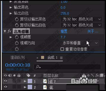 5、接著,我們再添加模糊效果。并且在其效果面板中設置參數。