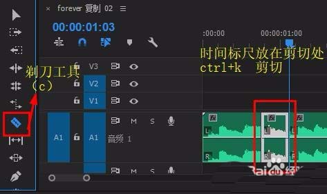 2、將要改變聲道的音頻片段ctrl+k 裁剪出來
