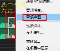 3、選中音頻片段,右擊鼠標(biāo),選中“音頻聲道”
