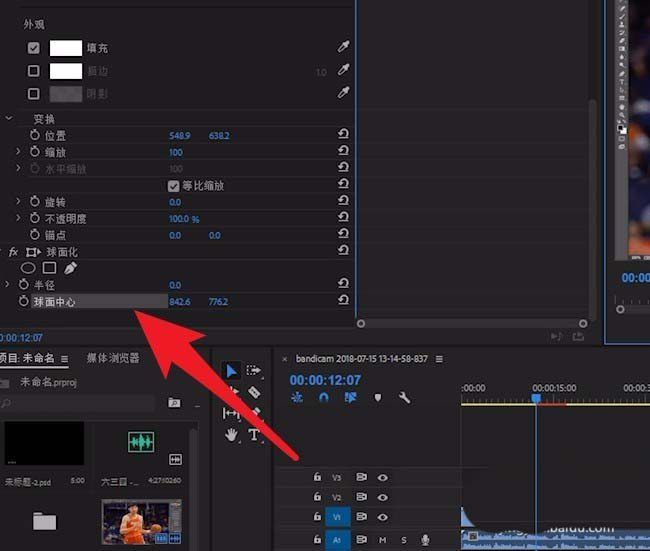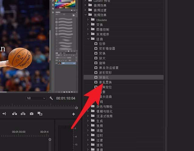 3、在視頻效果中找到球面化效果,雙擊應用到字幕層。