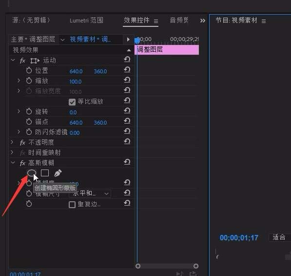 3、創建橢圓形蒙版,調節蒙版的大小。