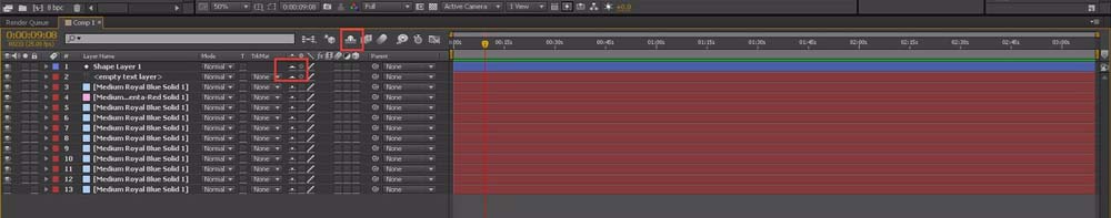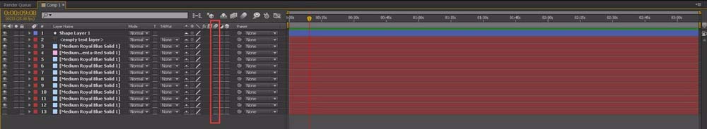 6、當我們將圖層狀態(tài)變成下面如圖所示時,然后再點擊框的圖標,就會把圖層在合成中隱藏,這樣的好處是,可以避免太多層的顯示