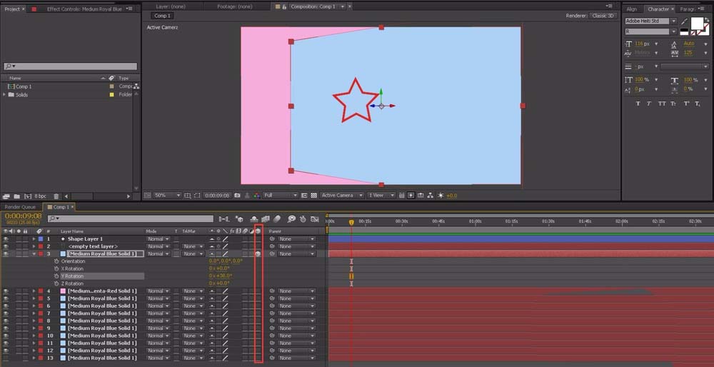 8、一個四方盒子控制的3D圖層,開啟后,會使圖層有基本的三維空間