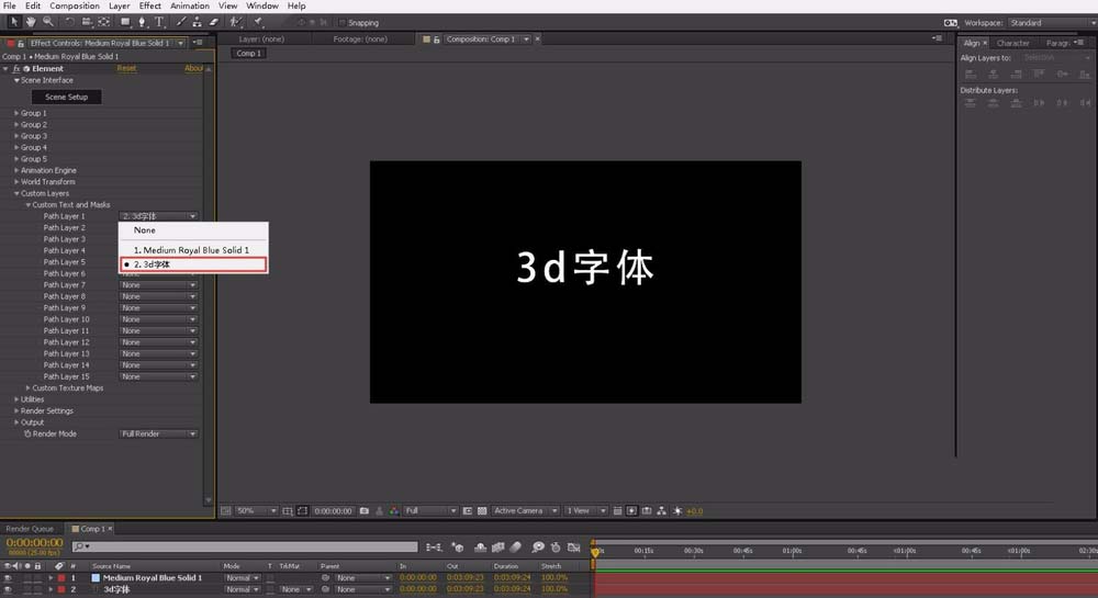 4、在自定義的custom text and mask中的path layer選擇新建的字體層
