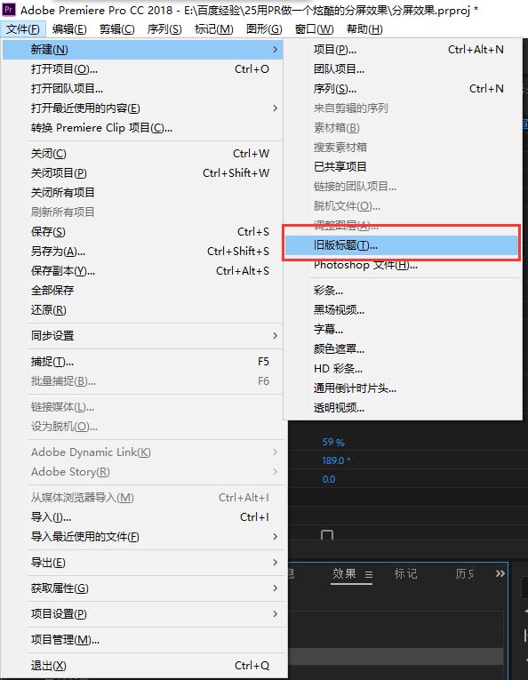 6、然后選擇文件菜單,找到新建中的舊版標題,彈出字幕創建窗口,點擊確定進入字幕編輯窗口。