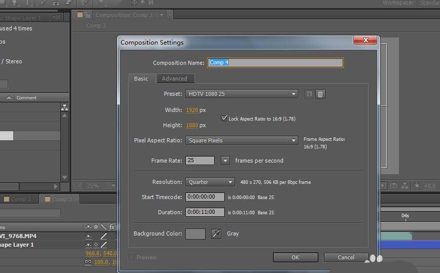 1、首先就是根基視頻的大小確定AE源文件的尺寸