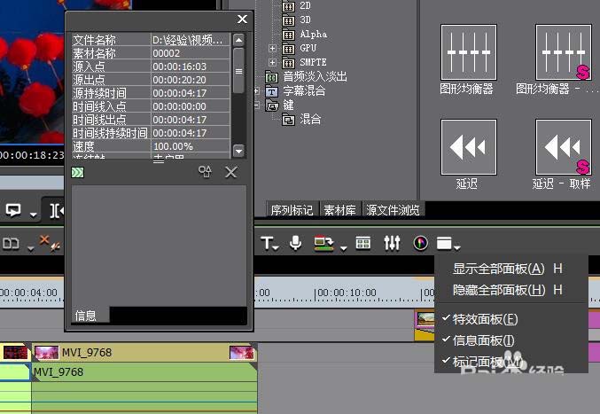 3、將里面的特效預(yù)設(shè)拖動到信息面板中,進行點擊打開調(diào)節(jié)