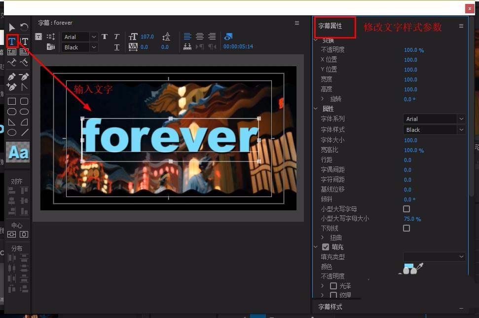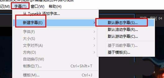 找到“字幕”-“新建字幕”-“默認靜態字幕”,修改“名稱”-“確定”,在“字幕編輯”面板中設置好所需文字后,即可重復“步驟2”~“步驟4”