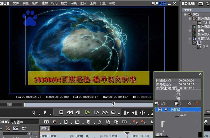 4、為素材添加-色度鍵-效果,形成最基本的摳像效果