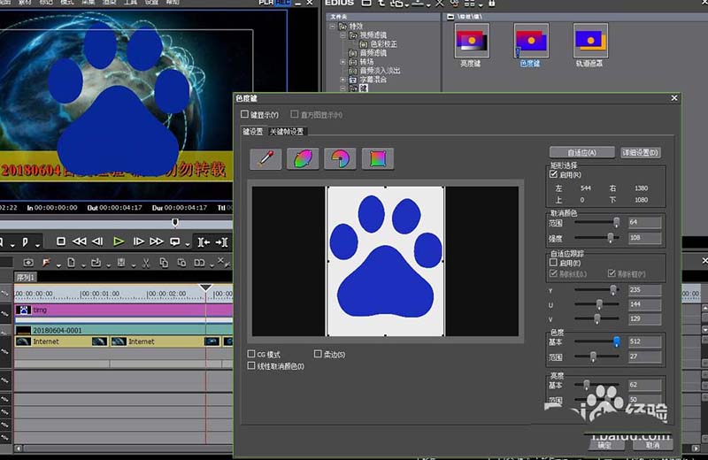 5、點擊-色度鍵,選取周圍的白色,進行摳像。
