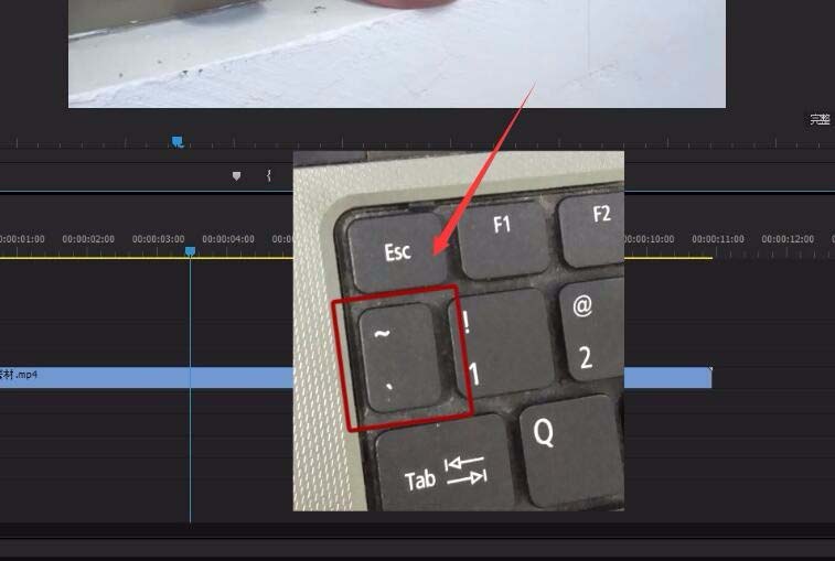 2、先教大家一個實用快捷鍵,按鍵盤上的~波浪線可以把監視器窗口放大,再次按下可以恢復,這個波浪線的作用很大,平常用的次數也很多,可以放大時間線面板,也可以放大其它的面板等等...