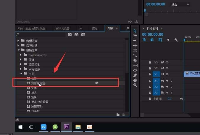 3、給視頻添加效果-視頻效果-扭曲-變形穩定器,效果控件也出現了-變形穩定器