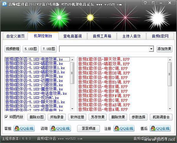 軟件可以自定義添加KX效果,自定義皮膚,自定義添加機架效果,做到真正的全能軟件要用于網絡K歌,支持創新5.1、7.1,創新外置聲卡0910、1090、1095以及其他的專業音頻聲卡。