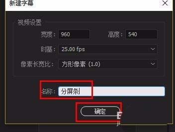 1、菜單欄點擊“字幕”-“新建字幕”-“默認靜態字幕”;設置名稱(如:分屏條),點擊“確定”