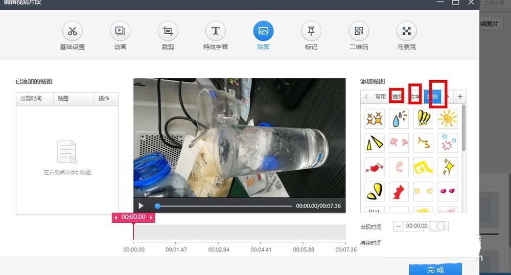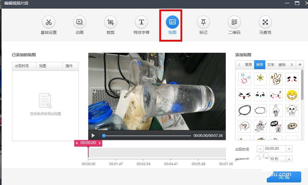 7、點(diǎn)擊貼圖編輯,可以設(shè)置一下時(shí)間的長(zhǎng)度,設(shè)置好之后導(dǎo)出就可以了