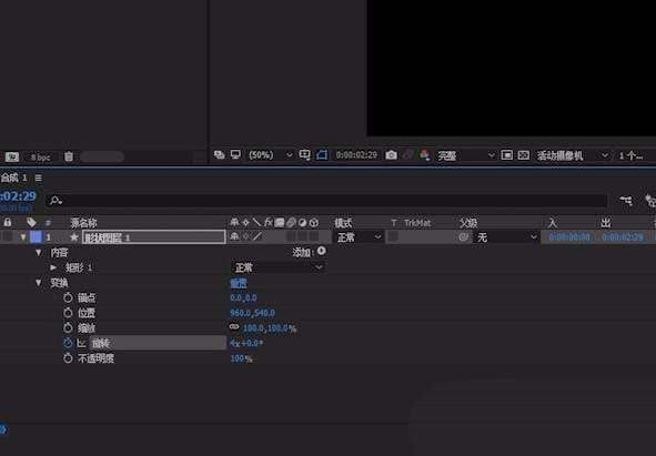 4、打開形狀動畫,在0秒處打上關鍵幀后,移動時間指示線到3秒處,設置旋轉圈數為4。