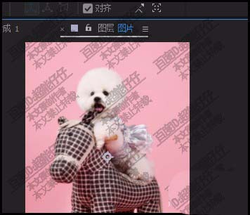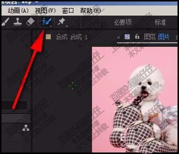 2、現在要用筆刷工具把圖中布偶給摳出來。鼠標雙擊圖片圖層,在合成窗口這里轉為圖層窗口