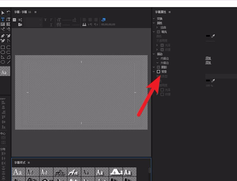 3、我們在字幕編輯器中點擊背景選項,將該復選框打勾。