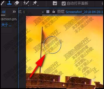 4、選中圖片圖層;再調(diào)出仿制圖章,鼠標移到圖片上。再放大圖片旗 這個位置。