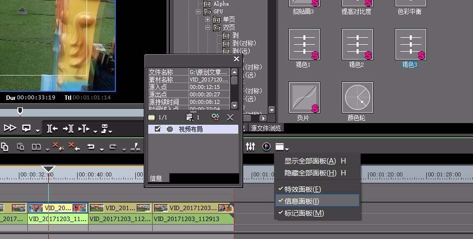 1、首先要明白的就是視頻的屬性都在-信息面板-中