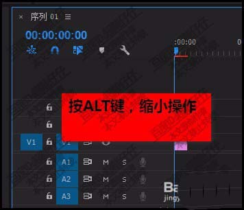 3、點擊一下,序列上的素材即拉開了。每點擊一次就拉大一些。