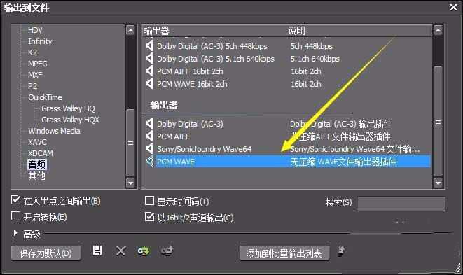 4、在右側(cè)選擇最下面的WAVE這個格式進(jìn)行輸出