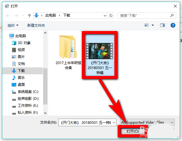 11、這時(shí)可以看到轉(zhuǎn)化后格式的視頻文件了,選中該文件點(diǎn)擊【打開(kāi)】即可。