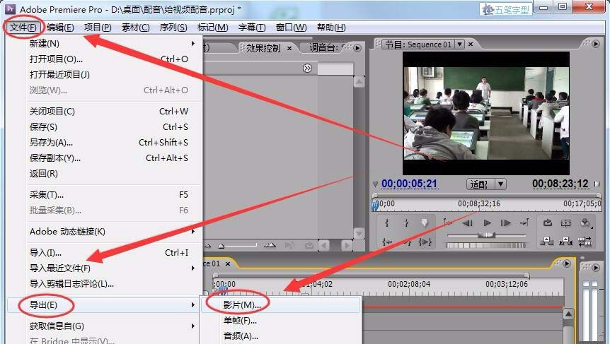 9、單擊文件---->導出---->影片,就可以將配好音的項目保存為視頻文件了。